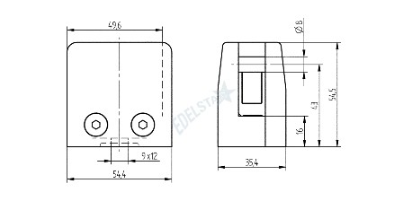 Pinces a verre carree 54 x 54 mm,Inox 316 brosse,fixation sur support plat