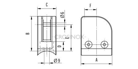Pinces a verre d’angle 53 x 60 mm,Inox 316 brosse,fixation sur support plat